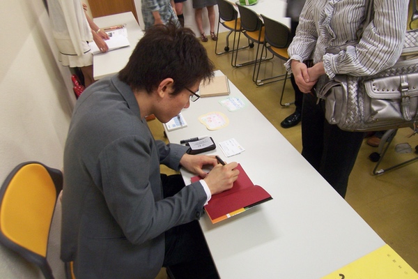 申込開始わずか1日半で満席になってしまい、キャンセルもほとんどなくて会場は超満員に。小林さんには会場に著作『ロス:タイム:ライフ』や『ULTRAMANX』もお持ちいただいたのですが、あっという間に完売。一人ひとりにサインをしてくださいました。